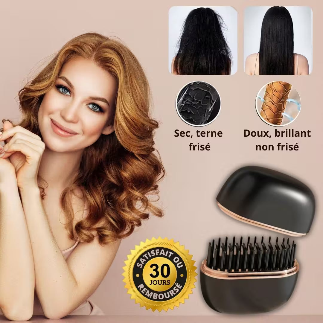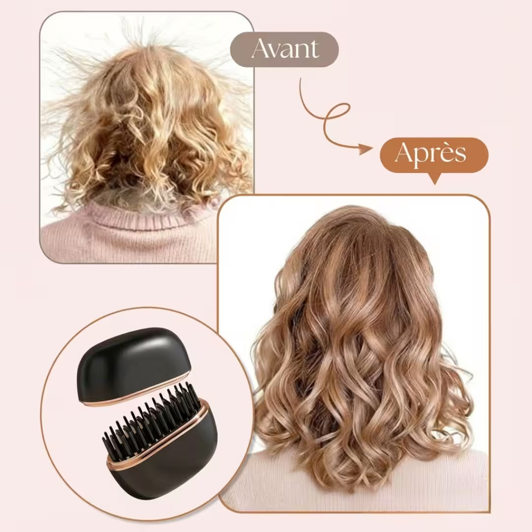 Le mini peigne lissant utilise la technologie ionique pour lisser et discipliner les frisottis sans brûler ni abîmer les cheveux. Il suffit de l'allumer, d'attendre 30 secondes, puis de le passer sur les mèches pour dompter instantanément les mèches rebelles ou redessiner la frange. Convient à tous les types de cheveux : fins, épais, raides ou ondulés.
